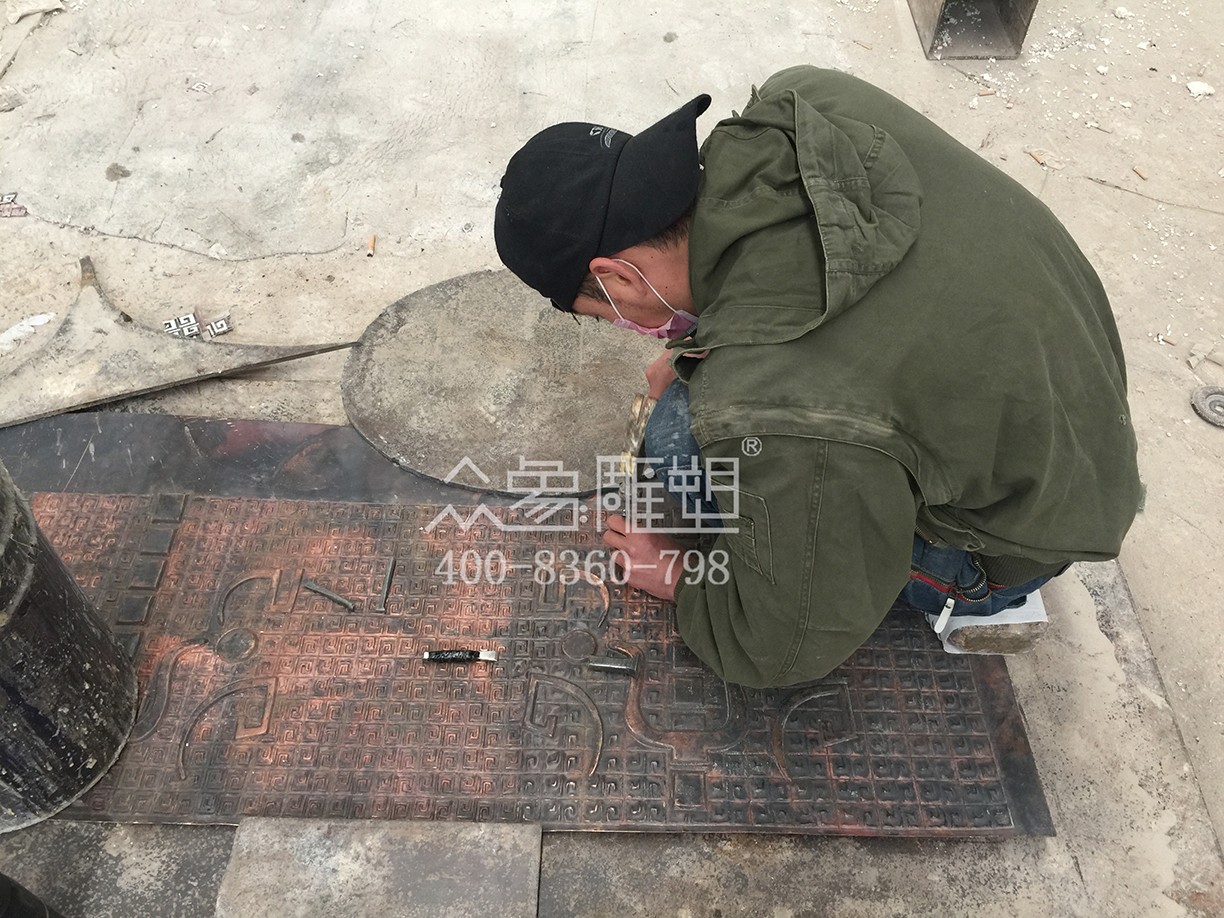 师傅正在锻造图案。