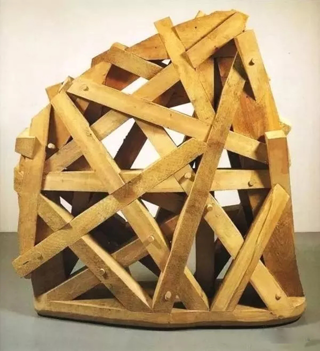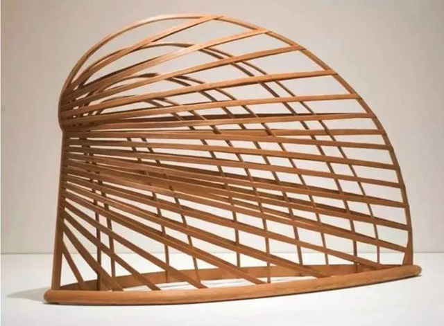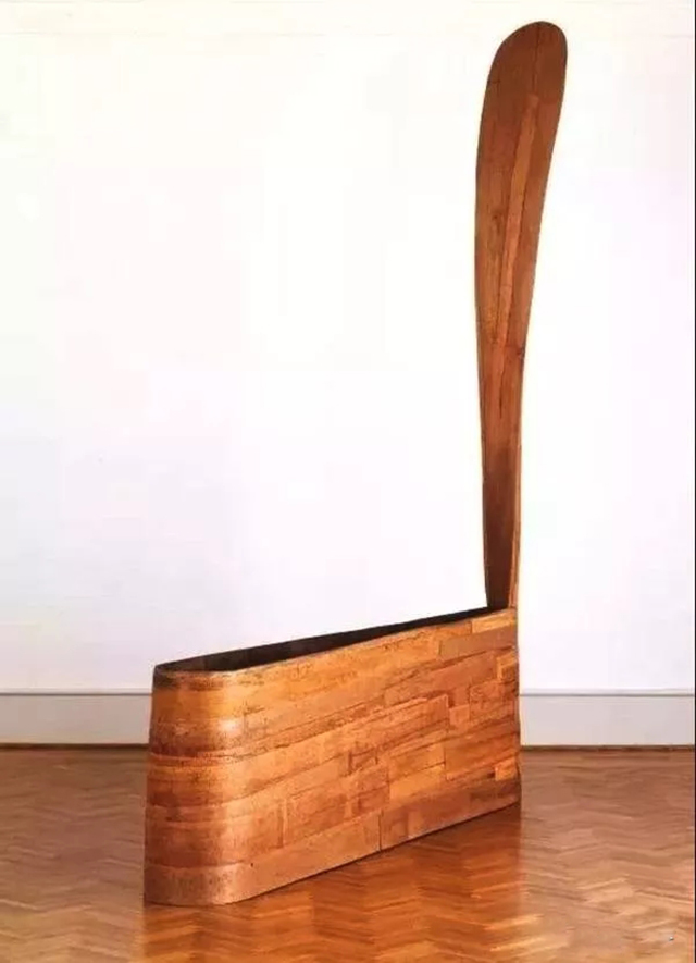 普耶尔首先引起人们注意的一件作品是1985年的钢木雕塑《魔咒》(The pell)。我们震惊于作品的曲线之美、圆锥的优雅尖细,以及矩形开口的变化多样;平板木条拥有细细的条纹,其充实的质感让“木条”看起来像是一个篮子。对编制篮子的影射暗示手工艺和匠人,进而暗示了人的存在。我们可以感受到这件物品是由手工精心制造,我们还能感到普耶尔的艺术背景不仅仅来自非洲,虽然他可能曾在那里见到过手工精湛的器皿和仪式用木器;他的艺术灵感还来源于瑞典,因为他曾在那里学习过木工;此外还有日本,那里具有制作功能性和装饰性木器的悠久传统。然而,仅仅由于普耶尔是一名美国黑人,就认定其艺术参照了非洲艺术的说法本身就是个错误。他的雕塑与民族身份和政治无关,只是反映出作者在多种文化中的广泛体验。通过以木材作为艺术媒介的方式,他得以将这些体验熟练、完美地表达出来。