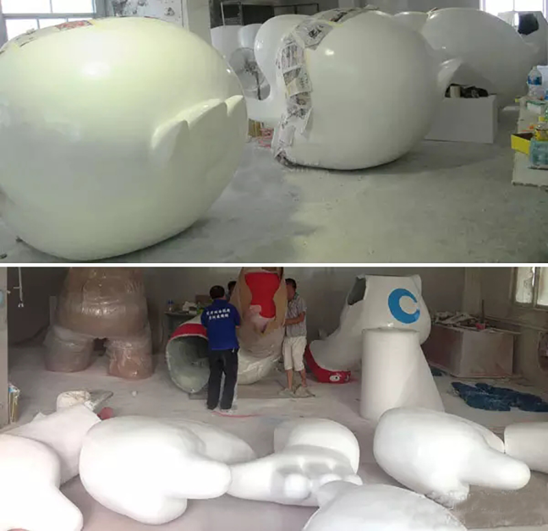 大型吉祥物“腾腾”玻璃钢卡通雕塑高3.5米,底座直径2.2米高1.3米。方圳严格按设计图纸生产制作,采用高密度雕塑泡沫材料造型,196#不饱和树脂及白金玻璃纤维布。表面采用汽车原子灰修补,汽车专用烤漆,内部为镀锌角钢架。外观规整,无磕碰、无划痕、无裂纹,无气泡砂眼,纹理细腻,采用高分子饰品亮光处理,色泽均匀,精致耐看。从方圳工厂制作完成打木架直接送到客户现场安装。