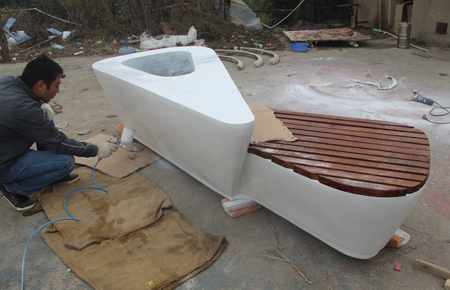以上步骤完成后也就是大致的玻璃钢雕塑出品之时,它出品时可能会有大大小小的洞,此时我们需要做的就是调制少许的玻璃钢再沾上凝固剂补在要补的地方即可,最后再将凸起的地方 用锉刀或是砂纸磨平即可。