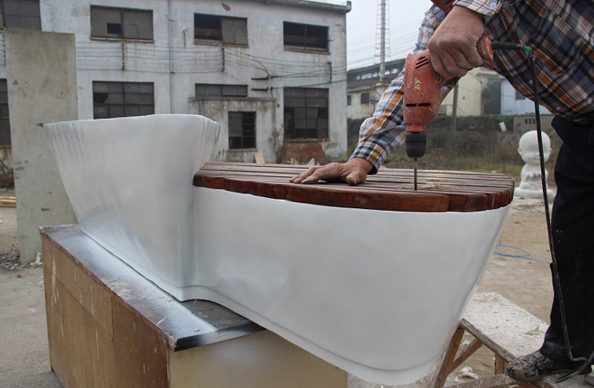 经过泥稿翻模做成的玻璃钢不是直接就是一个玻璃钢雕塑整体成品,而是雕塑躯体的分块,需要将这些小块拼接成一个整体。拼接用的工具有手电钻,铁丝,树脂等等。