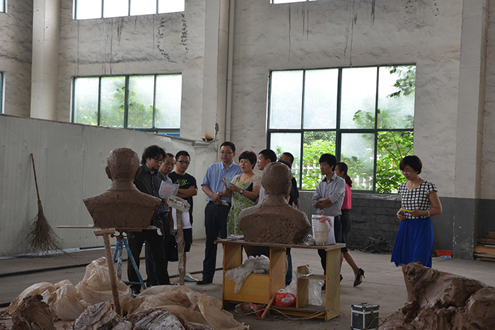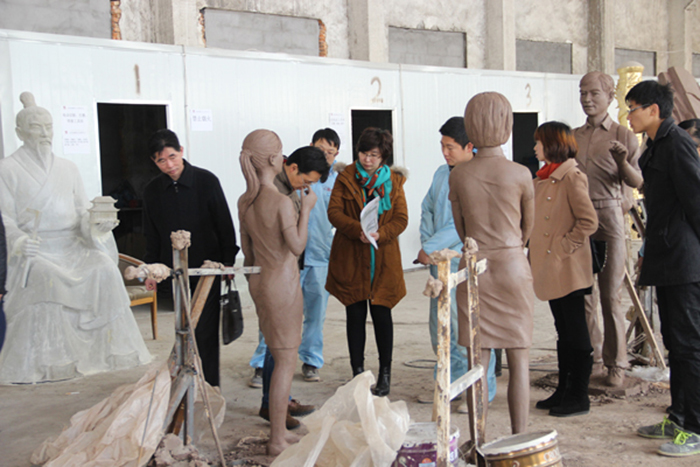 南京万科房地产领导一行来我确认铸铜人物雕塑制作进度